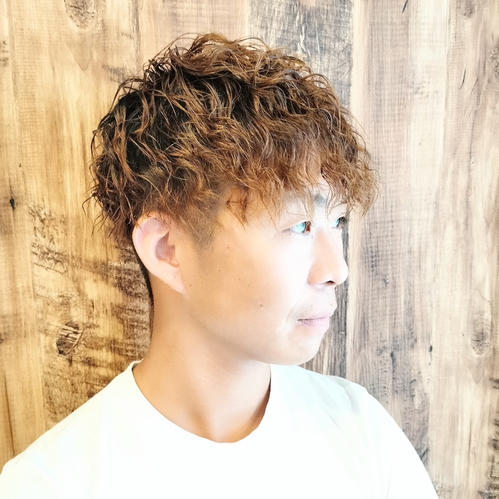 マッシュレイヤーベースのミディアムスタイルに縦落ちのツイストスパイラルパーマ。細かく巻く事で束感ある動きに仕上げ、カール感を出し過ぎない縦落ちパーマ。アンダーセクションは6mmのツーブロックスタイルにする事でメリハリのあるモテ髪に。