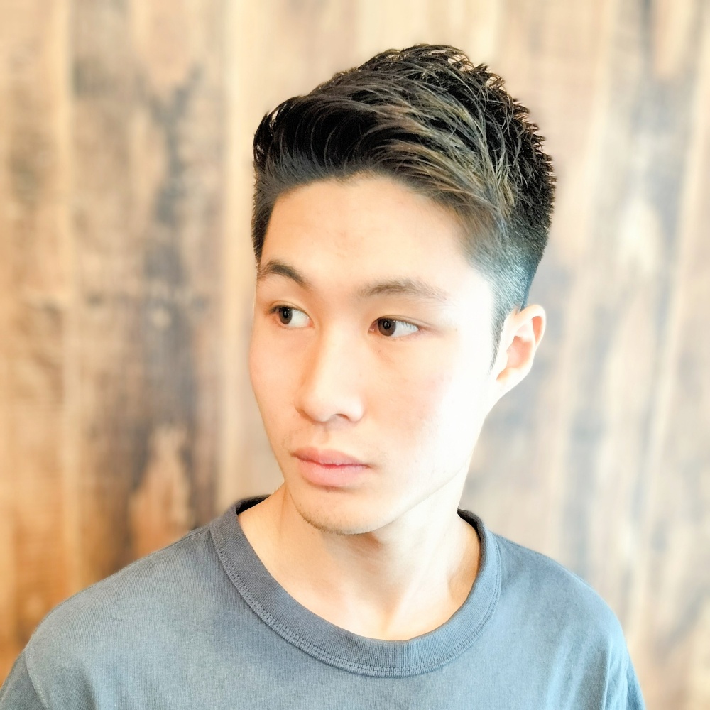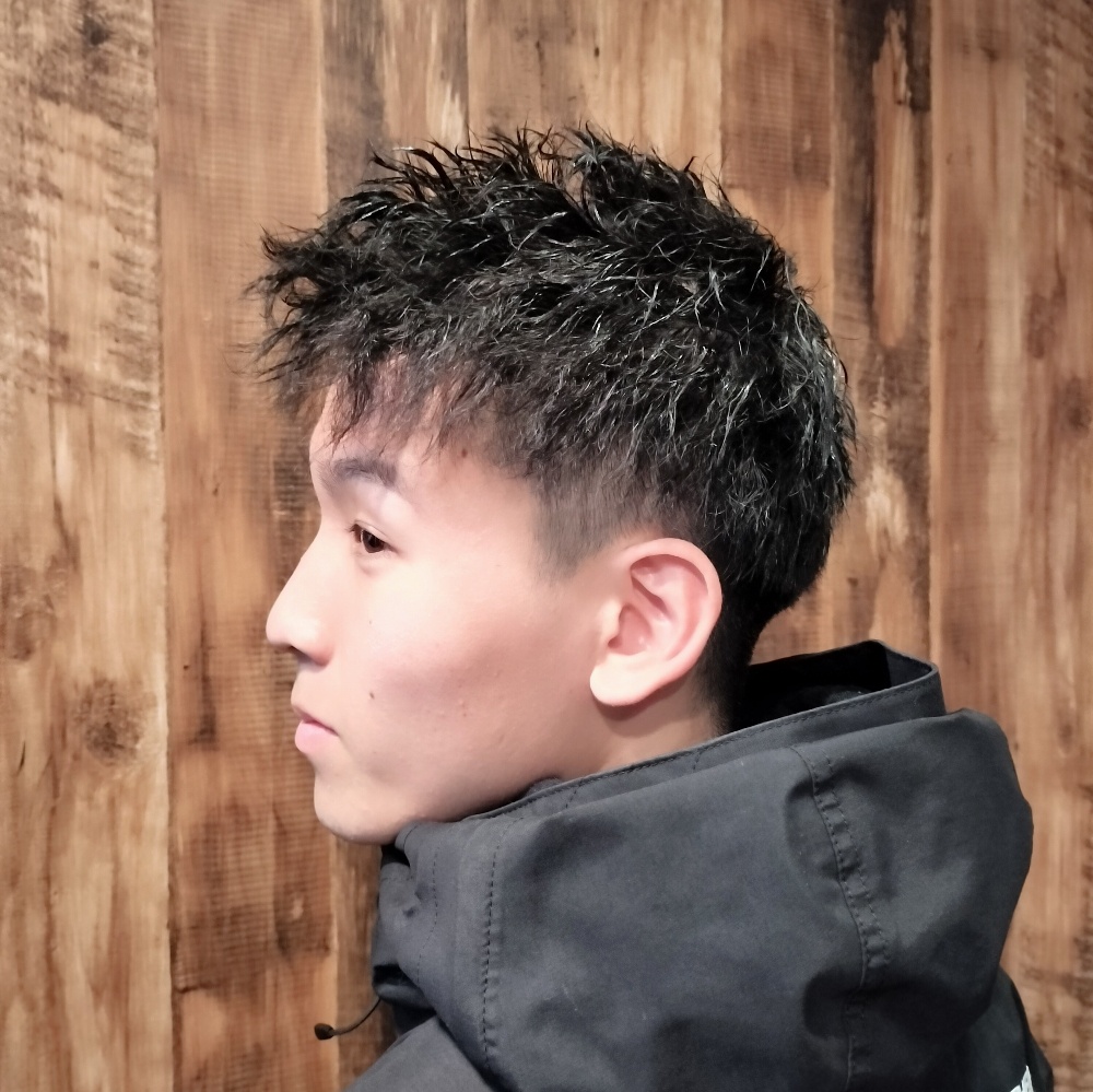 アンダーセクションは0mm〜6mmのスキンフェードでツーブロックに仕上げ、トップは遊びを入れつつメリハリのある涼しげなスタイルに仕上げました。